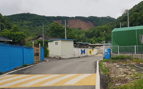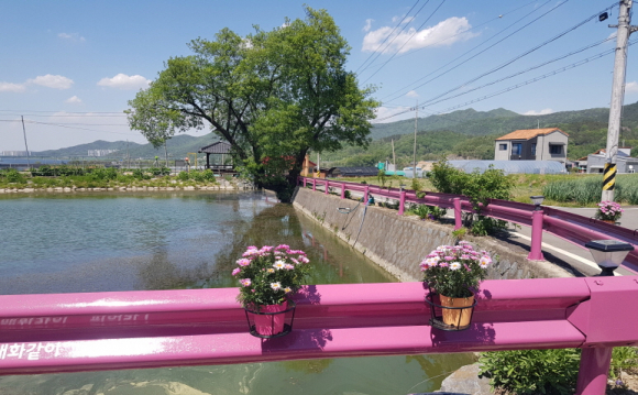 이젠 새로운 사람들이 집을 짓고 이주해와서 조금씩 마을 풍경이 달라지기도 합니다. 어느 날인가 못 가로 든든한 둑이 쌓더니 가드레일도 설치했습니다. 좀 지나서 들러보니 이번엔 가드레일에 색을 입혀 동네 분위기를 확 바꿔놓기도 합니다.
