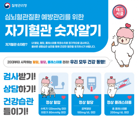 경상북도 성주군보건소는 최근 20~40대 비만이 증가하고 건강이 악화됨에 따라 50대 이상에서 만성질환이 지속적으로 증가하고 있어, 이를 예방하기 위해 9월 첫째 주 '심뇌혈관질환 예방관리 주간'을 맞아 ‘레드서클, 자기혈관 숫자알기’ 캠페인을 9월말까지 한 달간 운영합니다. 특히, 청‧장년층의 건강 관리를 위해 2040세대를 대상으로 ‘자기혈관 숫자알기’ 집중 홍보할 예정이라고 밝혔습니다.