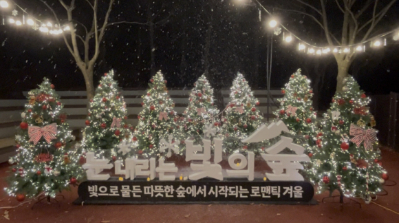 눈 내리는 빛의 숲은 17시부터 22시까지 운영되며, 수목원 곳곳에 설치된 미디어 조명과 크리스마스 장식이 어우러져 마치 동화 속 겨울 숲을 거니는 듯한 몽환적인 분위기를 자아내고, 주말과 크리스마스 연휴 기간에는 인공 눈 장치를 이용해 오감이 즐거운 겨울 명소가 될 것입니다.