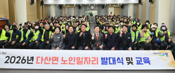고령군 다산면(면장 윤종백)은 1월 20일(화) 다산면사무소 3층 강당에서 2026년 다산면 노인일자리사업 참여자 309명을 대상으로 노인일자리 발대식을 개최했습니다.