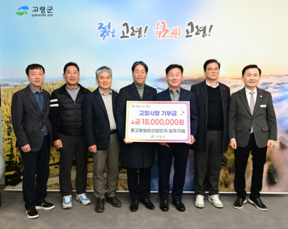 경상북도 고령군 동고령일반산업단지 입주기업체 대표들이 1월 13일 고령군청을 방문해 고향사랑기부금 1,800만원과 어려운 이웃을 위한 희망2026 나눔캠페인에 1500만원의 성금을 기탁했습니다.