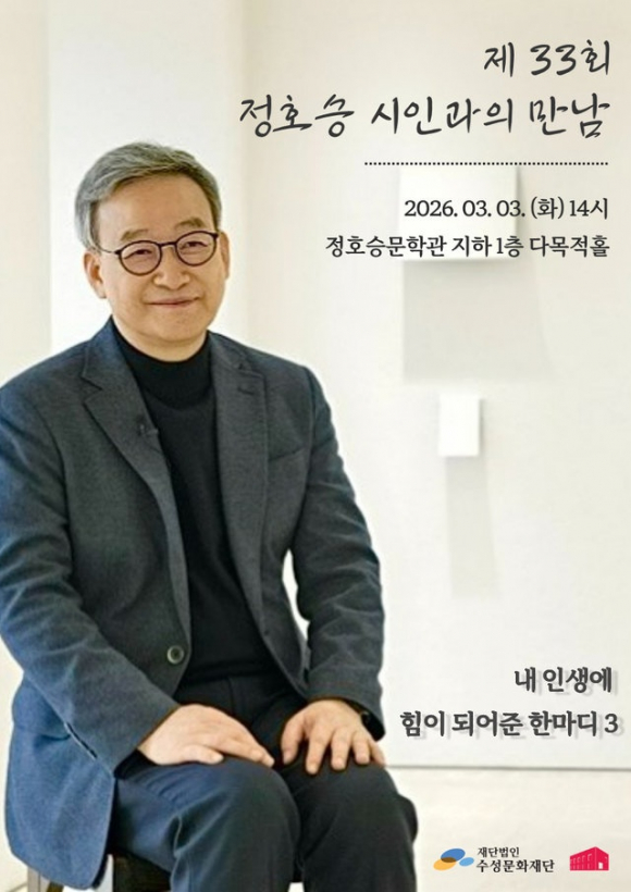'정호승 시인과의 만남'은 정호승 시인이 직접 문학과 삶의 이야기를 생생하게 전하는 강연형 프로그램으로 월 1회 진행되며, 매월 첫째 주 화요일에 열립니다. (간혹 변동이 있을 수 있으니 정호승문학관 누리집을 통해 확인바랍니다)