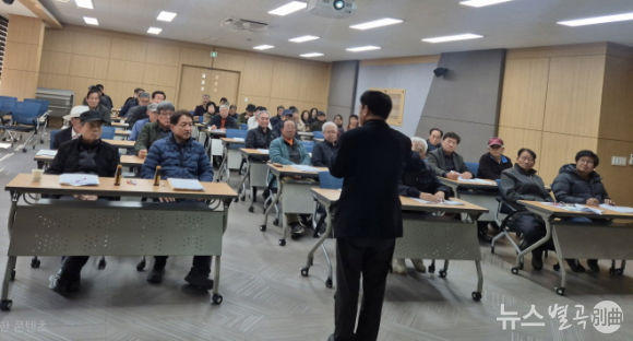 조합 회의실에서 열린 이번 교육은 수강 인원을 초과해 오전·오후 2회에 걸쳐 열렸으며, 우량 묘목 고르는 법, 식재 방법, 수세 관리, 시비법, 병해충 방제 등 과원 조성부터 고품질 감 생산을 위한 기술을 교육했습니다.