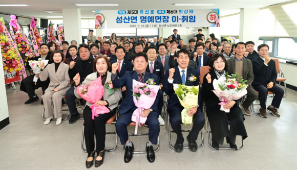 경상북도 고령군 성산면(면장 강민규)은 3월 13일 11시, 성산면 노인회관 2층에서 지역 기관 및 사회단체장과 주민 등 80여명이 참석한 가운데 제5․6대 성산면 명예면장 이·취임식을 개최했습니다.