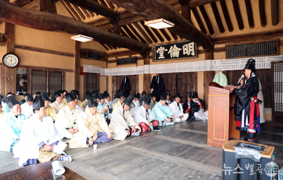 이날 제례는 공자를 비롯한 성현들의 학덕을 기리고, 그 정신을 오늘날에 계승하기 위해 진행됐으며, 초헌관에는 이윤식 전교, 아헌관에는 이충기 씨, 종헌관에 정욱 씨가 참여해 예를 올렸으며, 원로 유림들이 집례와 대축 등 주요 역할을 맡았습니다.