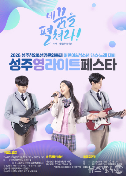 성주군축제추진위원회 관계자는 “미래의 주역인 어린이·청소년을 위한 성주 영라이트 페스타에 전국의 흥과 끼가 많은 어린이·청소년들의 많은 관심과 참여를 바란다.”고 밝혔습니다.