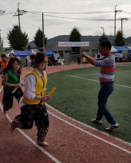 공굴리기, 800m 장애물 달리기, 줄다리기와 노래자랑, 행운권 추첨이 이어진 가운데 장애물 달리기에서 밀가루 안에 든 사탕을 고르다 주자마다 얼굴이 밀가루 범벅이 됐다.